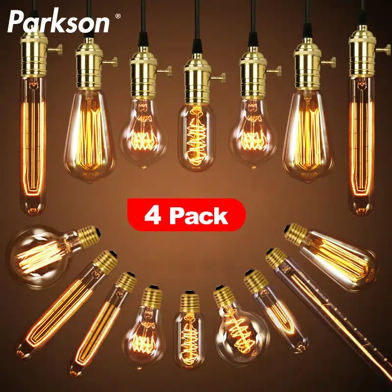 4pcs/lot Retro Edison Light Bulb E27 220V 40W ST64 G80 G95 T10 T45 T185 A19 A60 Filament Light Vintage Ampoule Edison Lamp