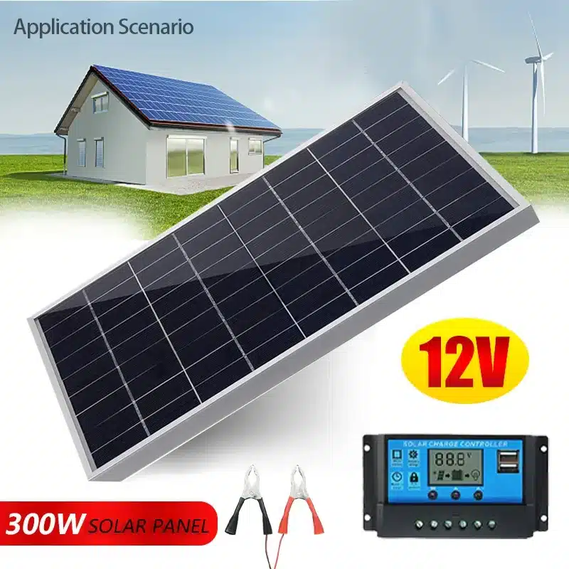 300W 12V Solar Panel Kit Complete Polycrystalline USB Power Portable Outdoor Rechargeable Solar Cell Solar Generator for Home
