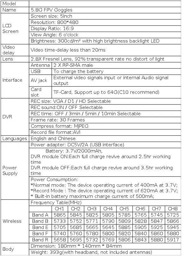5.8G FPV Goggles 40CH 5 Inch 800*480 Video Headset HD DVR