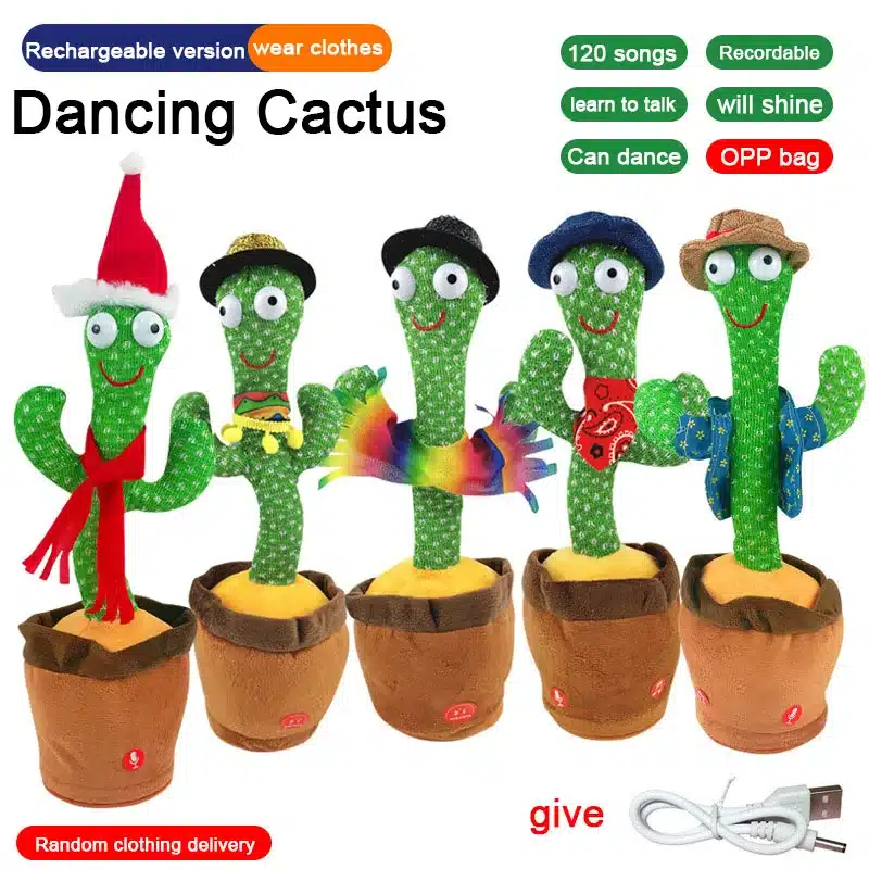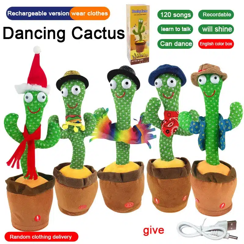 Dancing Talking Cactus Toys Singing Mimicking Recording Repeating What You Say Glow Stuffed Toy For Baby Boys Girl With clothing