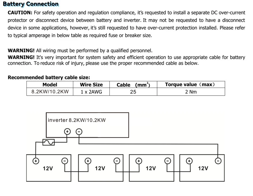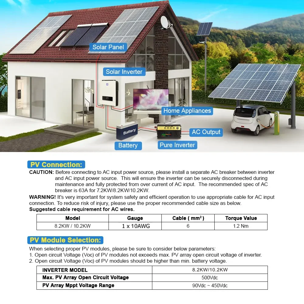NoteThis is a wide voltage Hybrid Solar inverter, If Solar Inverter without external battery ,The voltage which starts to connect to the solar panel must be above 120V for the inverter to work normally, if with external battery 90V is working.