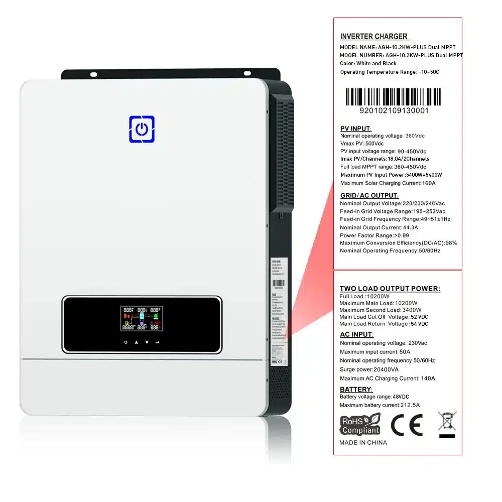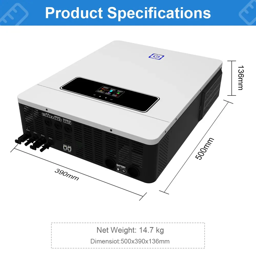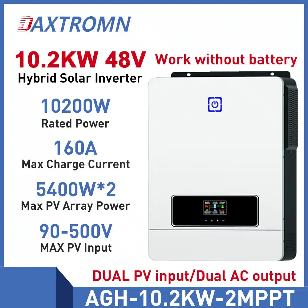 Daxtromn 10kw 10.2KW On/Off grid Solar Hybrid Inverter DC48V to AC 230V Output Built-in 160A Charge Controller 2 PV Dua AC out