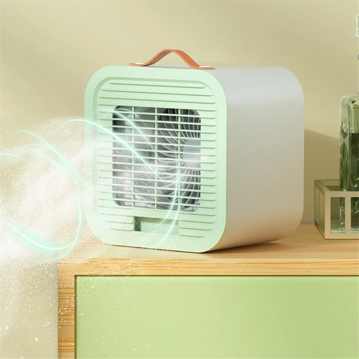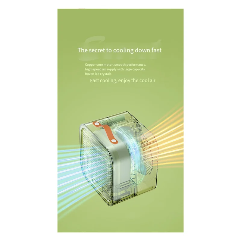 EARY TO USE & USB POWERED –With USB charging port. All you need to do is add water and ice-cubes to the small grid of this desktop air cooler, plug it into a USB port or power bank, and turn it on. The sleek and compact design of this air cooler makes it suitable for your desk, nightstand, or coffee table wherever you need it.