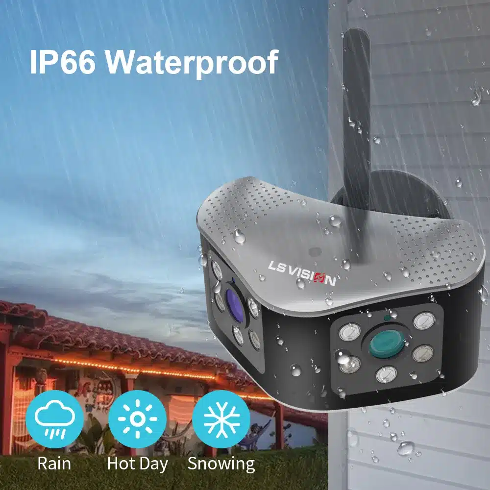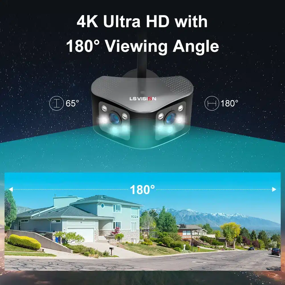 *The view angle of binocular splice camera reach 180 degree in horizon direction,and the super large wide angle will not be deformed.one camera can realise large-scale monitoring.