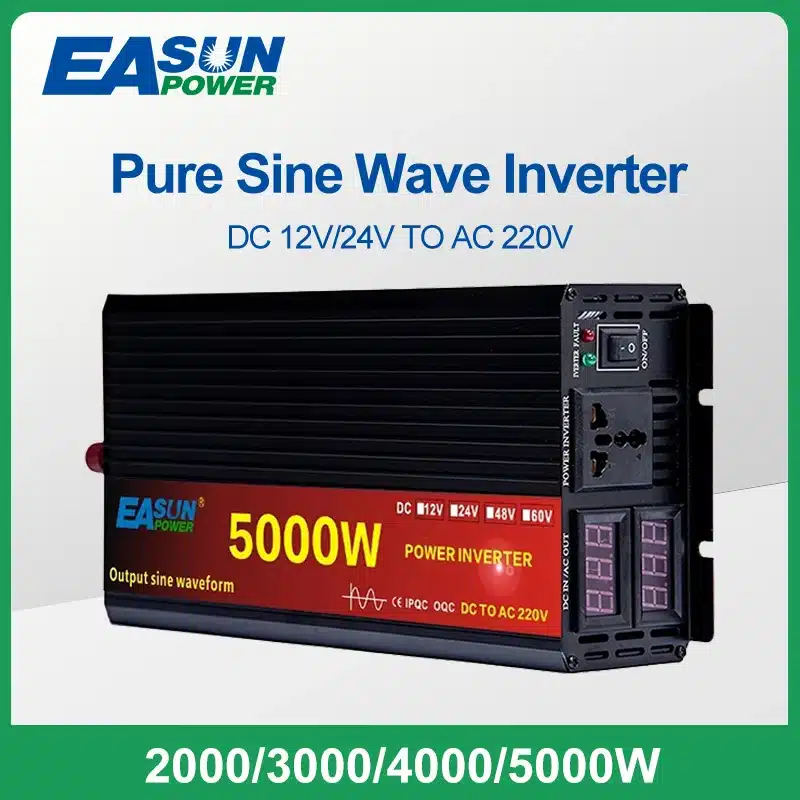 Compatible with 12V/24V/48V DC sources (car batteries, solar panels, etc.) and outputs 220V AC for global appliances.