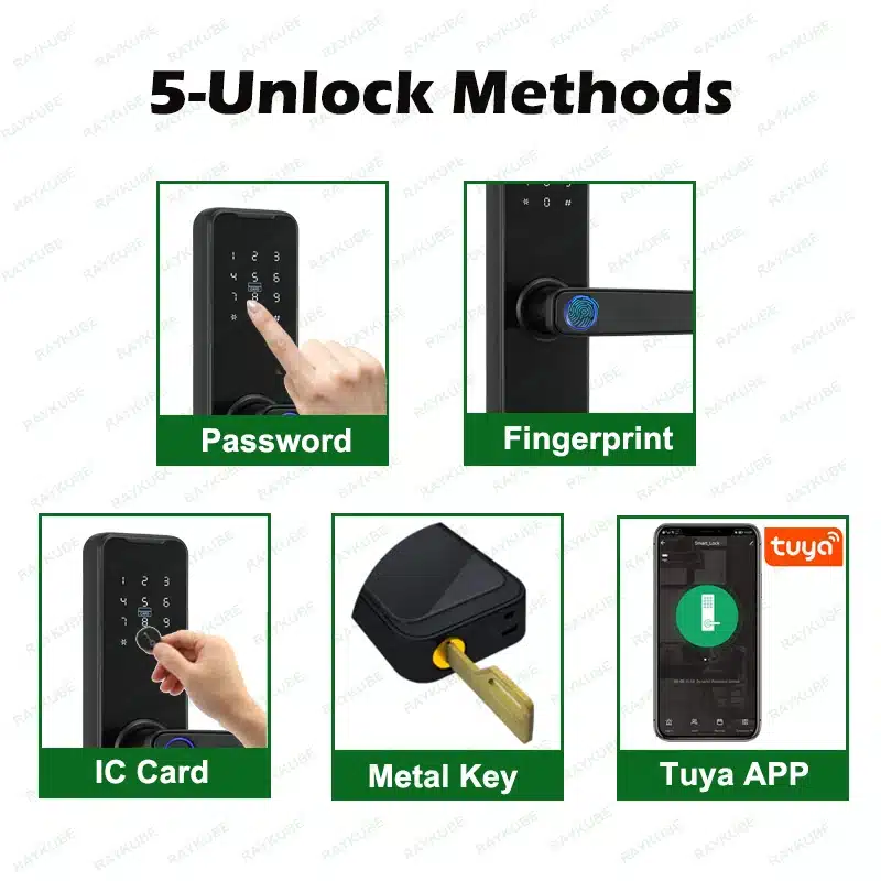 5 unlock methods: Tuya APP/ Fingerprint / Password / Smart Card / Key Unlock