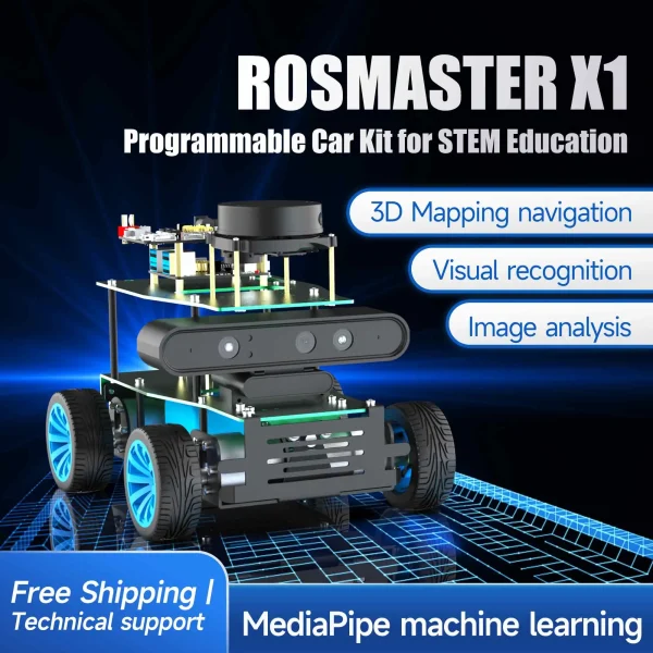 ROSMASTER X1 ROS Robot 4WD DIY Smart Car Kit Lidar SLAM Mapping Python Educational Projects for Jetson NANO 4GB/RaspberryPi 5