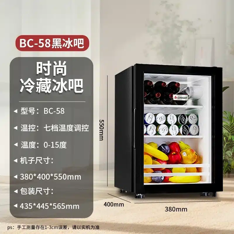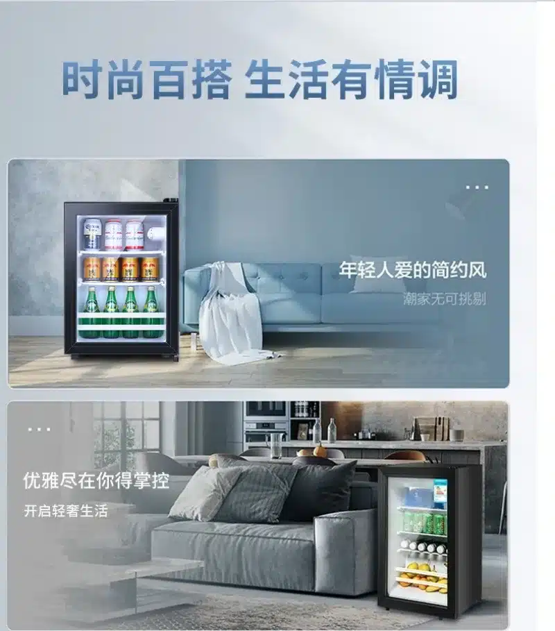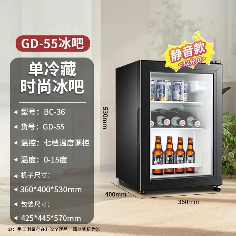 Single Refrigerated Ice Bar Hotel Use Small Freezer Transparent Door Refrigerator Wine Cabinet Silent Hotel Small Refrigerator