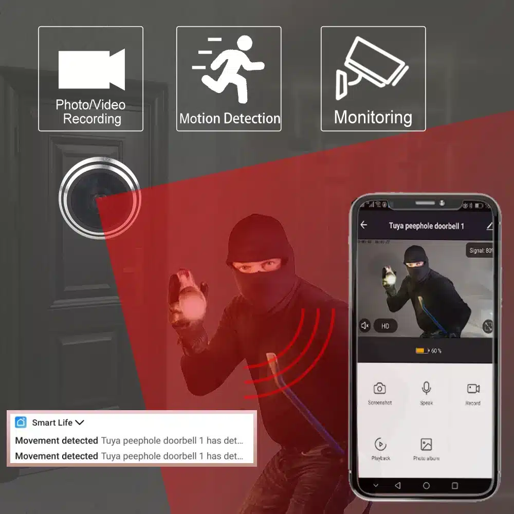 Function: Tuya 5Ghz / 2.4Ghz Video Peephole Wifi Camera Motion Detection Door Viewer Video-eye