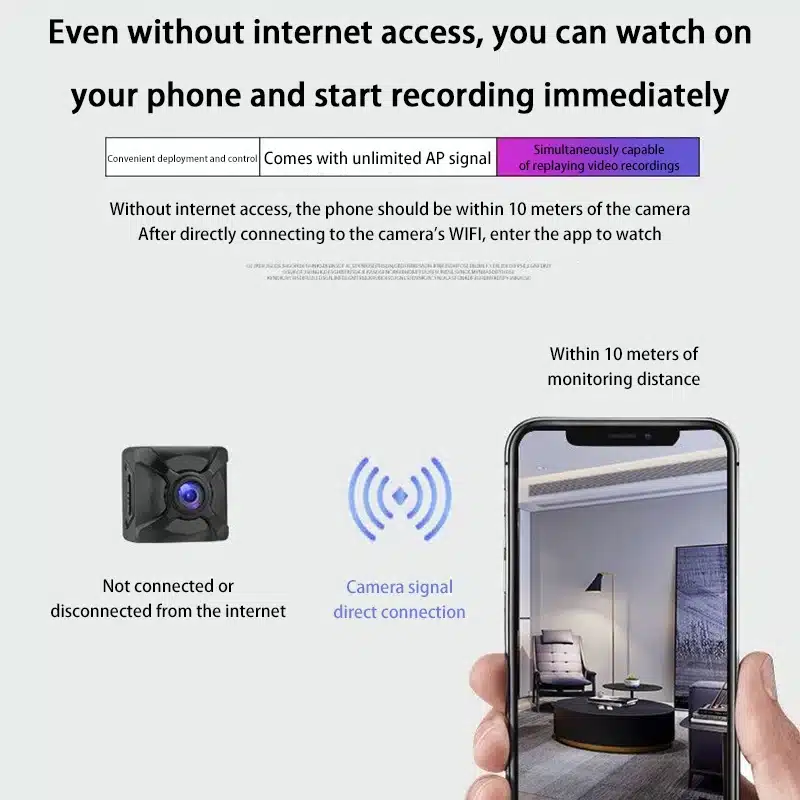 In an environment without network, the mobile phone is within 10 meters of the camera, and you can watch it by directly connecting to the camera's WIFI and entering the APP.