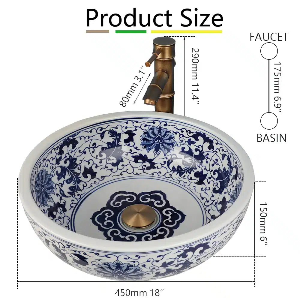 �� [FEATURE]: It’s a traditional chinese hand blue and white color flower design premium quality ceramic sink, durable for years and easy to clean. Unique idea for outstanding bathrooms or kitchens.They are purely handmade during the whole process and fired at a high temperature of 1300 degrees. It is difficult to avoid subtle flaws. Customers who required the perfect sinks please buy with caution.